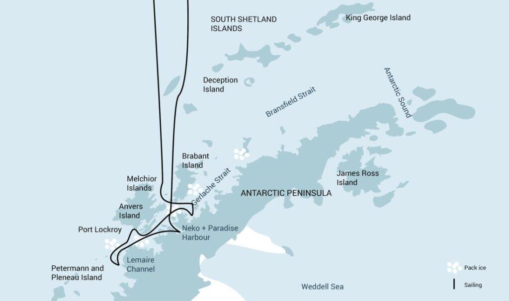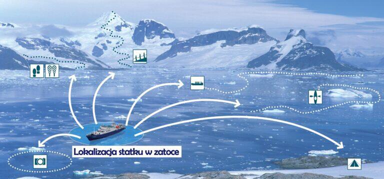 Plan naszej wyprawy przewiduje następujące miejsca (wszystko w ostateczności zależy jednak od warunków pogodowych, tak więc miejmy to na uwadze): ° Wyspa Denco: doskonałe miejsce do obserwacji pingwinów białopłetwych, fok weddela czy krabojadów foczych. ° Port Neko Harbour oraz Zatoka Paradise Bay: są to miejsca występowania gór lodowych oraz głębokich fjordów. Tutaj postawimy stopę na Kontynencie Antarktycznym! Po komfortowej nocy podążymy wzdłuż niezwykle uroczych i malowniczych terenów Kanału Lemaire (coraz bliżej stąd do linii Koła Polarnego). Następnie przepłyniemy przez wąski kanał Gullet utworzony pomiędzy wyspą Adelaide i kontynentem Antarktycznym. Będziemy eksplorować tę część dzikiego obszaru mając nadzieję, że pak i zbyt twardy lód nie zablokuje nam dostępu do: ° Wyspa Petermann: pingwiny adeli oraz kormorany niebieskookie, ° Wyspa Pleneau: jest to doskonałe miejsce do obserwacji humbaków, płetwali karłowatych, pingwinów adeli oraz kormoranów niebieskookich. ° Port Lockroy: pokonując kanał Neumayer postaramy się dopłynąć do opuszczonej, brytyjskiej stacji badawczej, która aktualni pełni funkcję muzeum i poczty. W tej okolicy będziemy mieli spore szanse na spotkanie pingwinów białopłetwych oraz kormoranów niebieskookich. W niewielkiej odległości zajrzymy także do Damoy Point – miejsca gdzie przebiega dawna trasa przepraw na nartach (postaramy się tu dotrzeć w rakietach śnieżnych). ° Wilhelmina Bay & Guvernoren: doskonałe miejsce do obserwacji humbaków! Tutaj napotkamy wrak statku Guvernoren – spłonął w 1915 roku. ° Wyspa Melchiora: to w tej okolicy ujrzymy zapierające dech w piersiach arktyczne krajobrazy zdobione lodowcami. Będziemy mieli szansę na spotkanie: lampartów morskich, wielorybów czy krabojadów foczych… ° Charlotte Bay: doskonałe miejsce do obserwacji dzikiej przyrody! Tutaj mamy szanse zobaczyć: humbaki, płetwale karłowate, pingwiny białopłetwe czy foki Weddella.