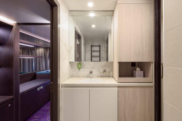 Na pokładzie łodzi oferujemy wysoki standard zakwaterowania dla 176 pasażerów w następujących kabinach: 6 grand suit z balkonem o powierzchni 27m², 8 junior suit o powierzchni 20-21m², 11 kabin typu twin deluxe o powierzchni 19-21m², 14 kabin typu twin z oknem panoramicznym o powierzchni 12-14m² oraz 27 kabin dwuosobowych porthole (z bulajem), 2 kabiny trzyosobowe porthole (z bulajem) oraz 4 kabiny trzyosobowe porthole (z bulajem) o powierzchni 12-18m². Jeden z pokładów składa się z dużego salonu obserwacyjnego z wydzieloną salą wykładową, w której prowadzone są przez załogę statku interaktywne warsztaty, prezentacje oraz przedstawienia tematyczne. Na pokładzie łodzi M/V Hondius zauważyć można elegancki wystrój połączony z modernistycznym wystrojem. Wprowadza to gości w przytulny nastrój oraz nieformalną atmosferę naszych ekspedycji…