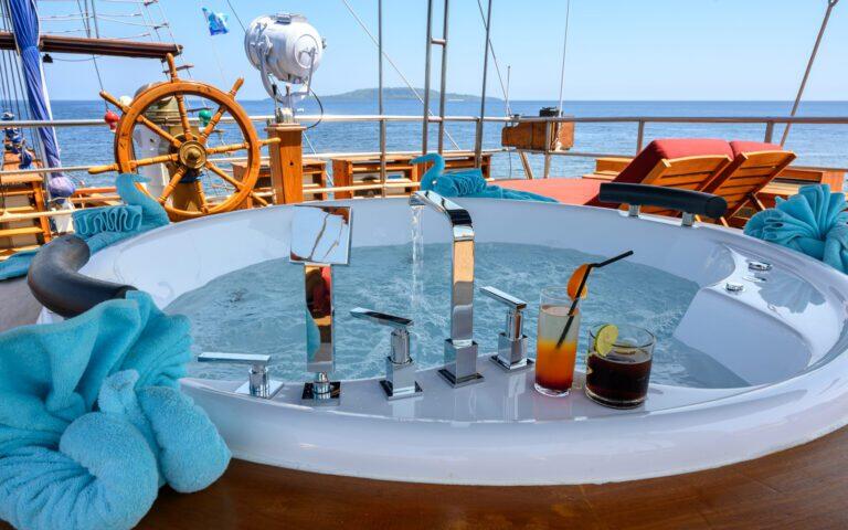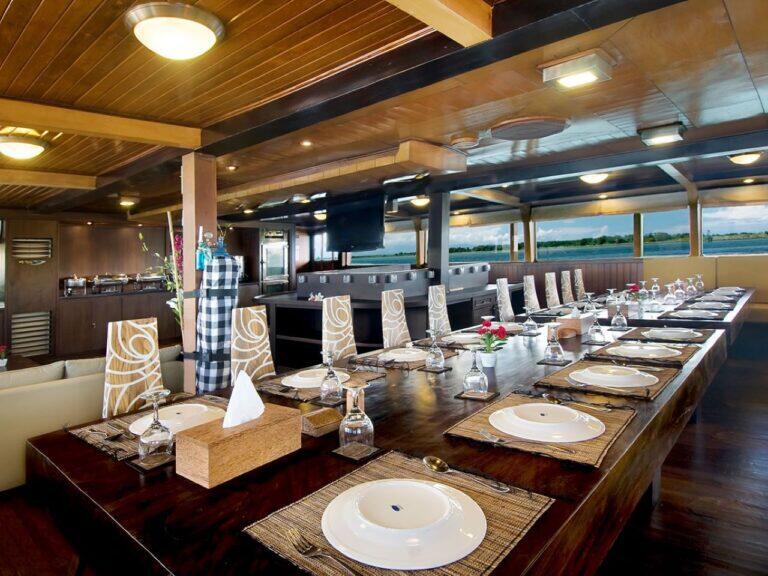 M/Y Cheng Ho to łódź nurkowa zaprojektowana i dostosowana do potrzeb także wybrednych płetwonurków 🙂 Jest bardzo wygodna – pozwala doświadczać niezwykłego komfortu podczas odkrywania piękna archipelagu Komodo, jednego z Nowych 7 Cudów Natury i wpisanego na Listę Światowego Dziedzictwa UNESCO .Ten wspaniały statek (o wymiarach 35 x 10,5 metrów) został przystosowany by spełniać cele mieszkaniowe. Aktywności min. związane z nurkowaniem / snorkelingiem są prowadzone z 2 dodatkowych aluminiowych łodzi towarzyszących. Ten ekskluzywny koncept pozwala na większy komfort, w tym dodatkową przestrzeń i większe bezpieczeństwo, zapewniając niezrównany poziom obsługi i doznań gości. Łódź Cheng Ho to drewniany statek w stylu Phinisi, oferuje wiele zakątków, w których można podziwiać widoki, zjeść posiłek, opalać się lub po prostu odpocząć w jacuzzi. Duży górny pokład wyposażony jest leżaki do opalania. Na głównym poziomie znajduje się strefa relaksu, którą można przekształcić w jadalnię na świeżym powietrzu oraz bar. Klimatyzowany salon i jadalnia dają możliwość ochłodzenia się, znajdziesz tu także naszą bibliotekę i rozrywkę audio/video. Dla pasjonatów foto/video oddajemy stację do przechowywania kamer i sprzętu video. Łódź oferuje kajaki wraz z paddleboard! oraz Nitrox 32%.