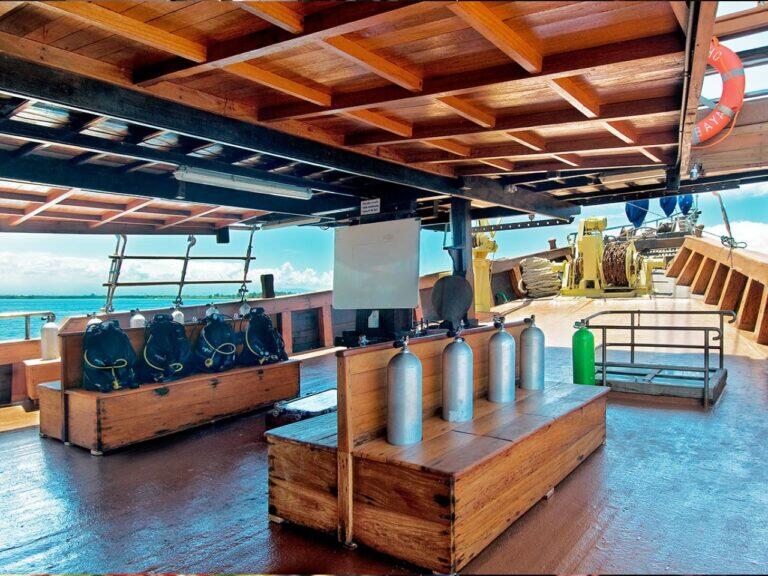 3 nurkowania w ciągu dnia i ew. jedno nurkowanie nocne (łącznie planowane jest 17 nurkowań). Trasa safari wiedzie przez najwspanialsze nurkowiska Archipelagu Komodo, min: Manya Alley, Batu Balong, Tatawa Besar, Hot Rock, Castle and Cristal Rock… Pomiędzy nurkowaniami posiłki: śniadanie, lunch, przekąski