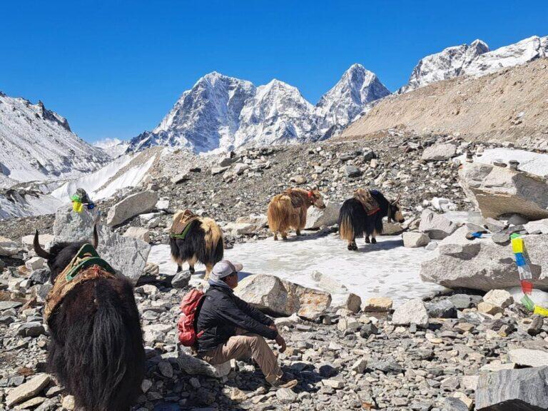 Tego dnia, zaplanowany mamy trekking do Lobuche (44910 m.n.pm.p), zbliżając się do magicznej wysokości 5 km nad poziomem morza. Będzie to niezwykle ciekawy i malowniczy odcinek naszej wędrówki. m.in. przez morenę lodowca Khumbu – kodowego króla tej doliny i zarazem najbardziej znany lodowiec Himalajów,