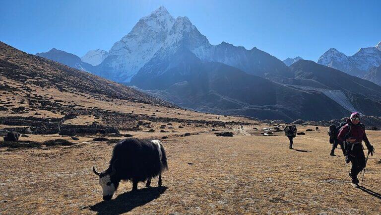 Dzisiaj naszym celem, będzie Dingboche 4400 m.n.p.m. Pierwsze kroki wędrówki skierujemy do Pangboche 4000 m.n.p.m. gdzie zjemy lunch. Zobaczymy najstarszy w rejonie Khumbu buddyjski klasztor z XVIII w, w którym do niedawna można było oglądać skalp i czaszkę Yeti – niestety zastało to ukradzione. Trasa jest dość przyjemna łatwa, chociaż pewnie odczujemy już pierwsze sygnały wysokości i mniejszej ilości tlenu, dlatego spokojnie i bez jakiegokolwiek pośpiechu delektować się będziemy widokami na coraz bliższe oku ośnieżone szczyty i himalajskie widoki,
