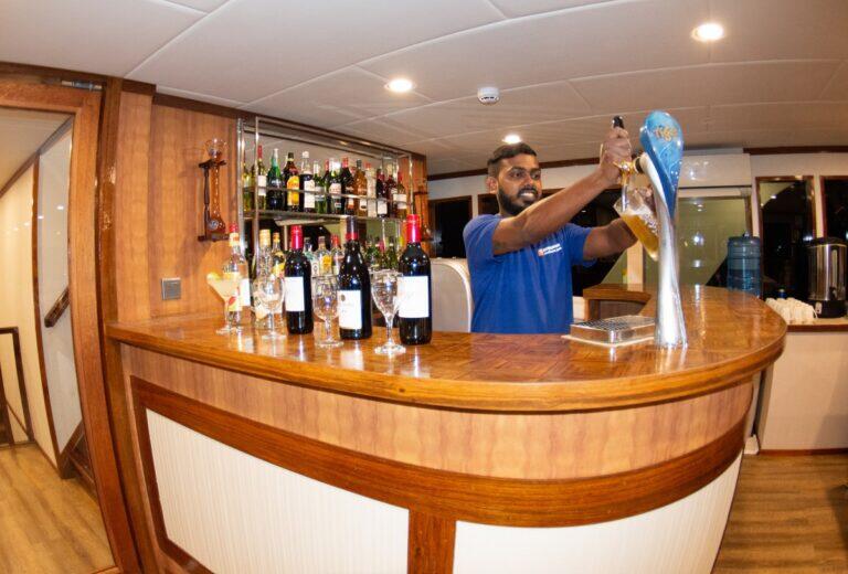 butle, balast, pas balastowy, nitrox, opiekę lokalnego przewodnika nurkowego; łodzi towarzyszy 24h/dobę druga łódź (donia) – z niej odbywają się nurkowania, ładowanie butli powietrzem,