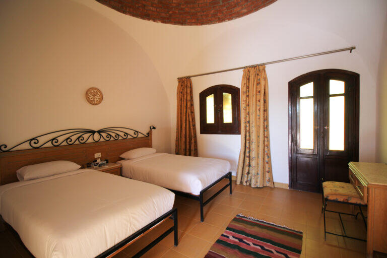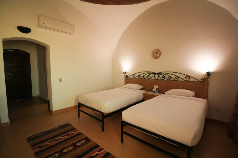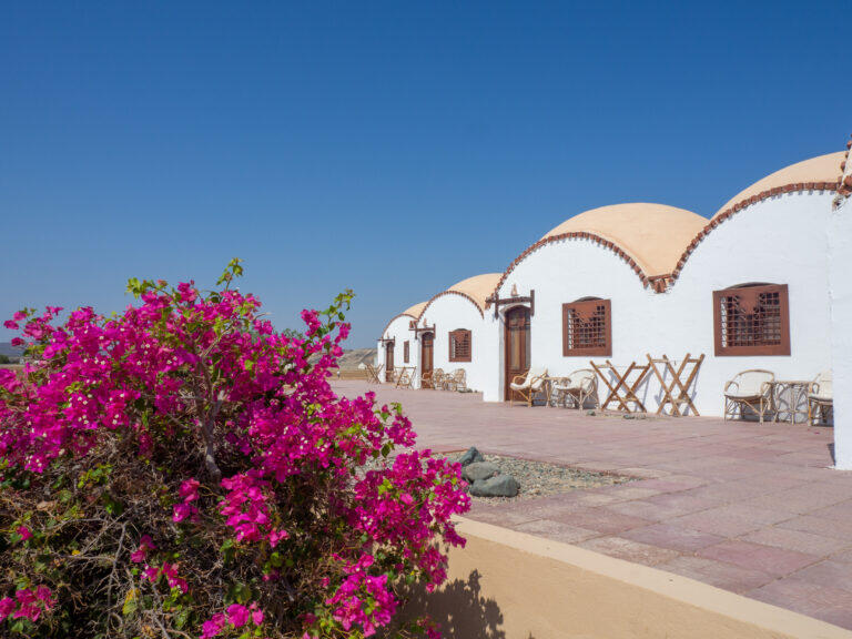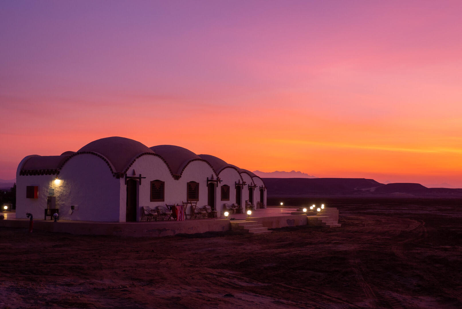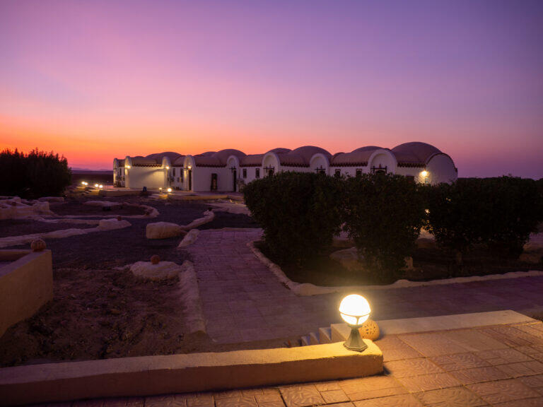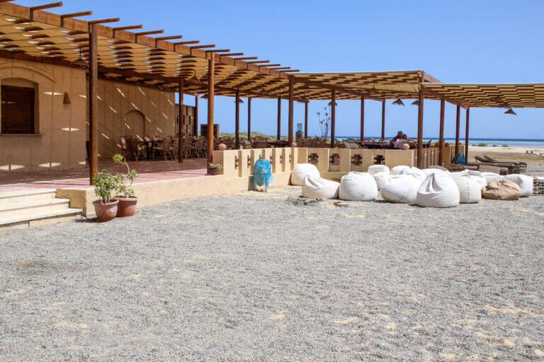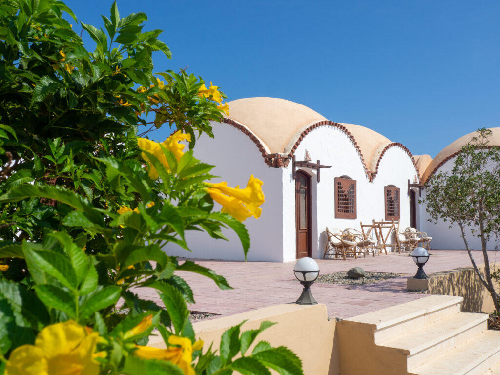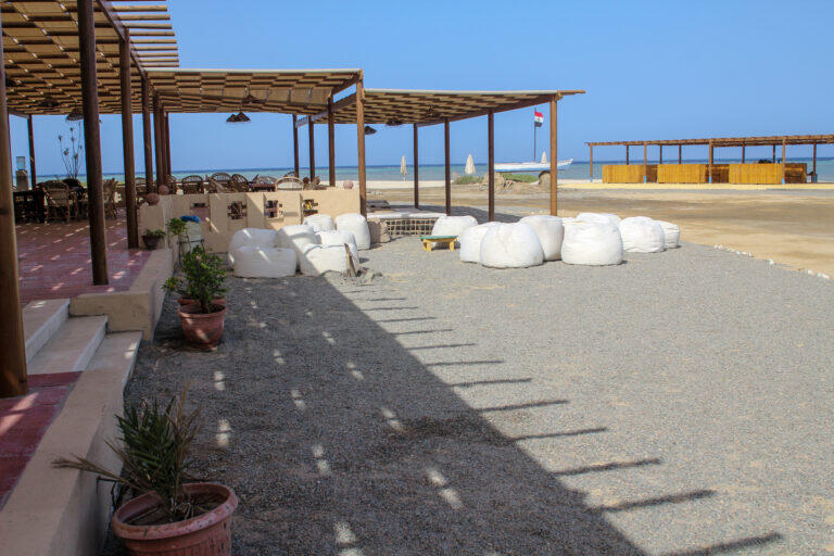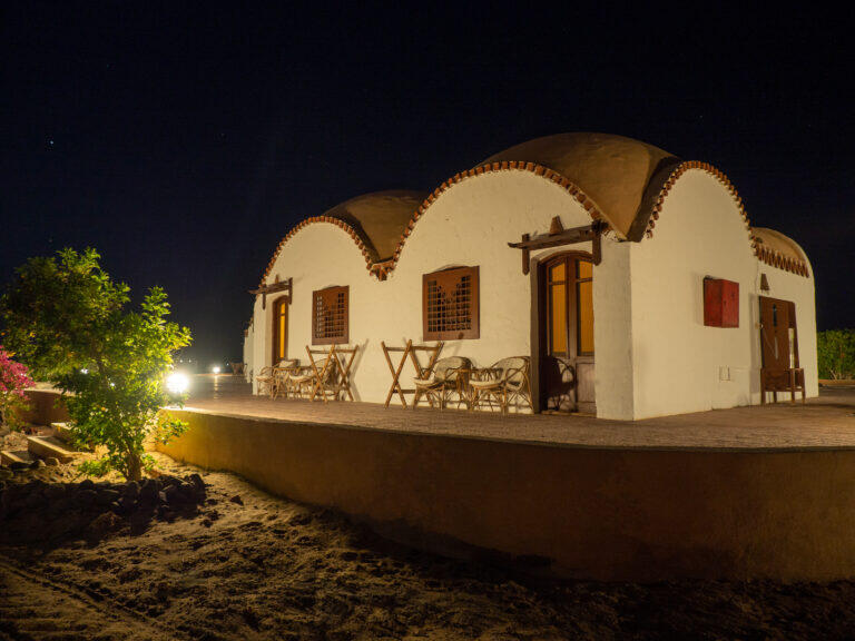 Na terenie campu znajduje się 16 bungalowów. Nazwa „Madyafah” pochodzi ze starożytnego Egiptu i oznacza większy pokój w domu. Bungalowy Madyafah to kamienne budynki / bungalowy o powierzchni 24m², zwieńczone dachem w formie kopuły. Ta typowo pustynna architektura jest niezwykle efektywna w ciepłym klimacie – zapewnia chłód w ciągu dnia bez potrzeby klimatyzacji. Każdy domek posiada dwa tarasy, każdy o powierzchni 8m², wyposażony w bambusowe fotele. Jeden z tarasów zapewnia widok na góry, drugi natomiast skierowany jest w stronę morza. W każdym z domków znajduje się łazienka z prysznicem (z zimną i ciepłą wodą), toaleta, dwa łóżka, szafa na ubrania, toaletka z lustrem i wentylator. Goście powinni przywieźć swoje własne ręczniki plażowe oraz przybory toaletowe. Ecocamp zapewnia jedynie ręczniki łazienkowe i pościel, regularnie zmieniane przez serwis sprzątający. - Po więcej zdjęć zapraszamy do galerii:
